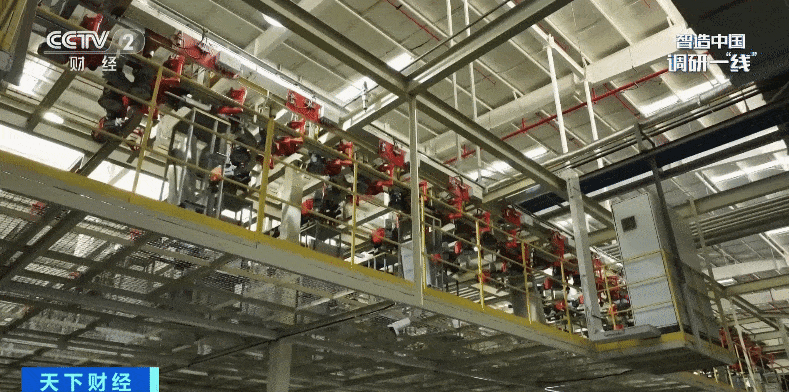 在工廠二層,機(jī)械臂、傳送帶、往復(fù)升降機(jī)會(huì)把零部件送到指定的生產(chǎn)環(huán)節(jié)。隨后,機(jī)械臂和傳送帶會(huì)把外殼和內(nèi)膽運(yùn)送到預(yù)裝環(huán)節(jié)。